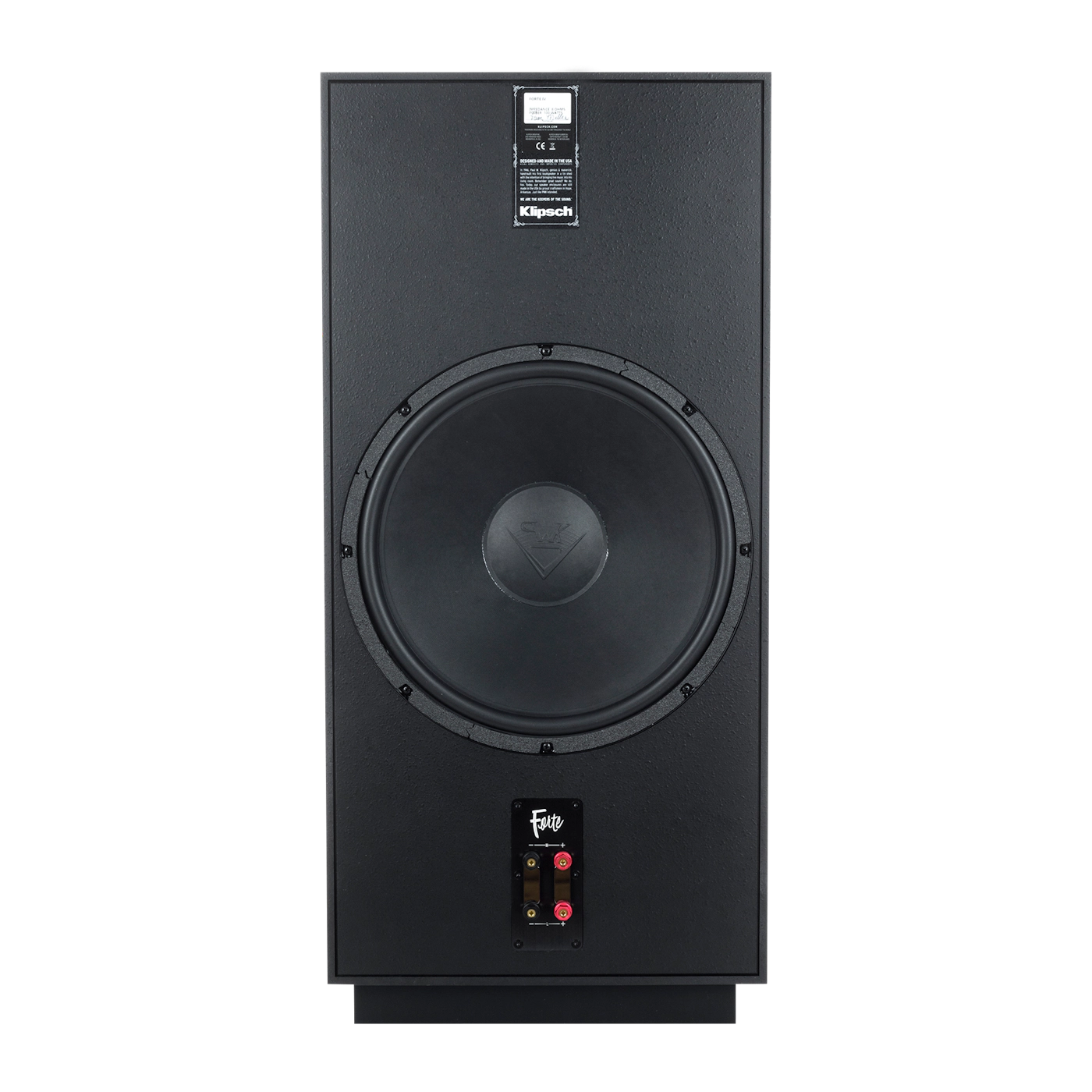 Forte IV, sınıfının en iyi verimliliği ve güç kullanımı ile daha gerçekçi sesi sağlayabilmesi için tamamen yeni ve birinci sınıf bileşenlerden yararlanarak - devre boyunca elektriksel bozulmayı en aza indirerek - selefinden tamamen yenilenmiş bir hale getirilmiştir. Yeni ağ sistemi, efsanevi Klipschorn ve La Scala hoparlörlerin klasik üç yollu dik eğimli tasarımından yararlanıyor.